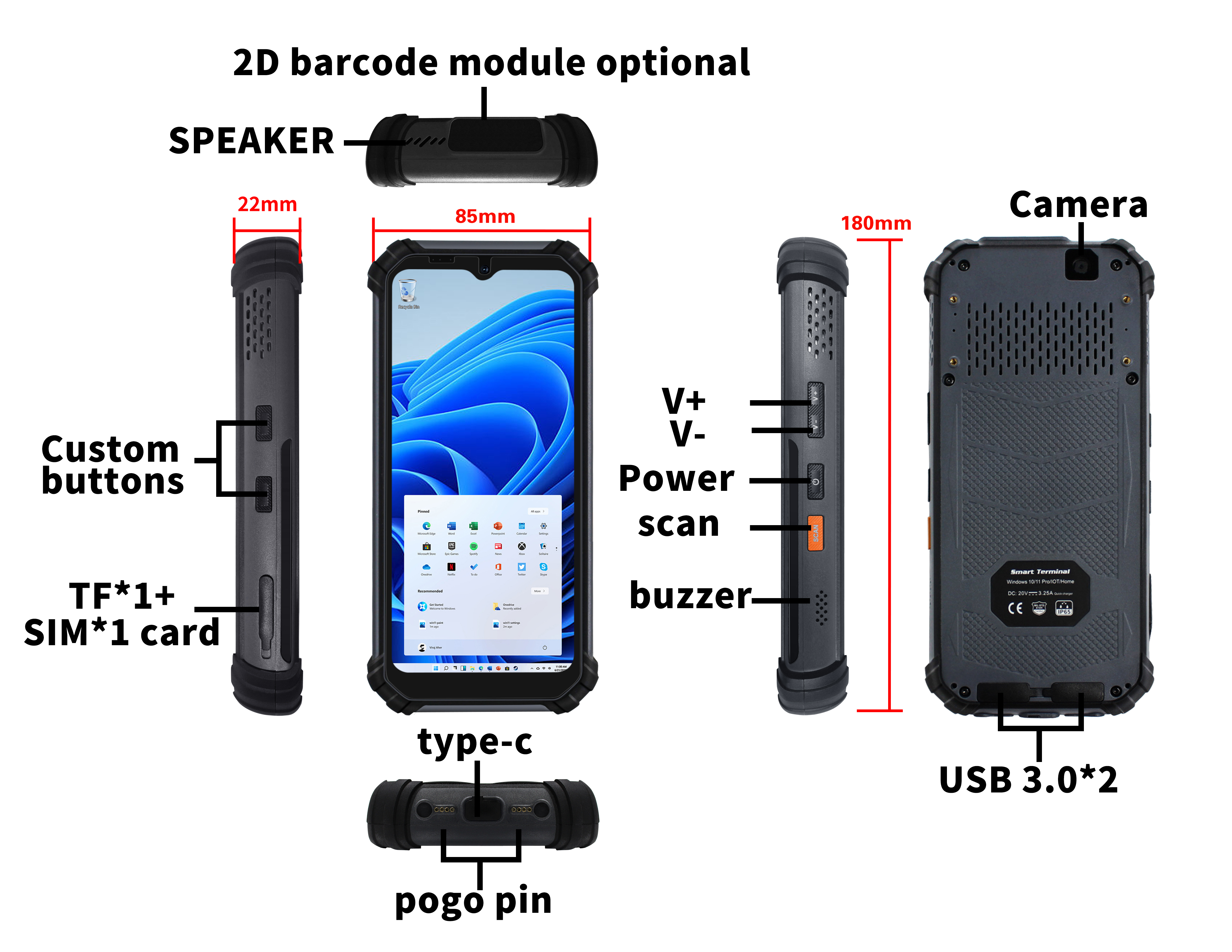 産業用の頑丈なWindows 11ハンドヘルド端末。Intel N 100プロセッサ、6.5インチスクリーン、5000 mAhの長いバッテリー。2 Dスキャン、NFC、Beidou/GPSを統合。IP 65保護、1.2 mドロッププルーフ、-20°C〜55°C操作。完全な接続性、産業用ソフトウェアの互換性、柔軟な拡張。物流、倉庫、フィールドオペレーションに最適です。