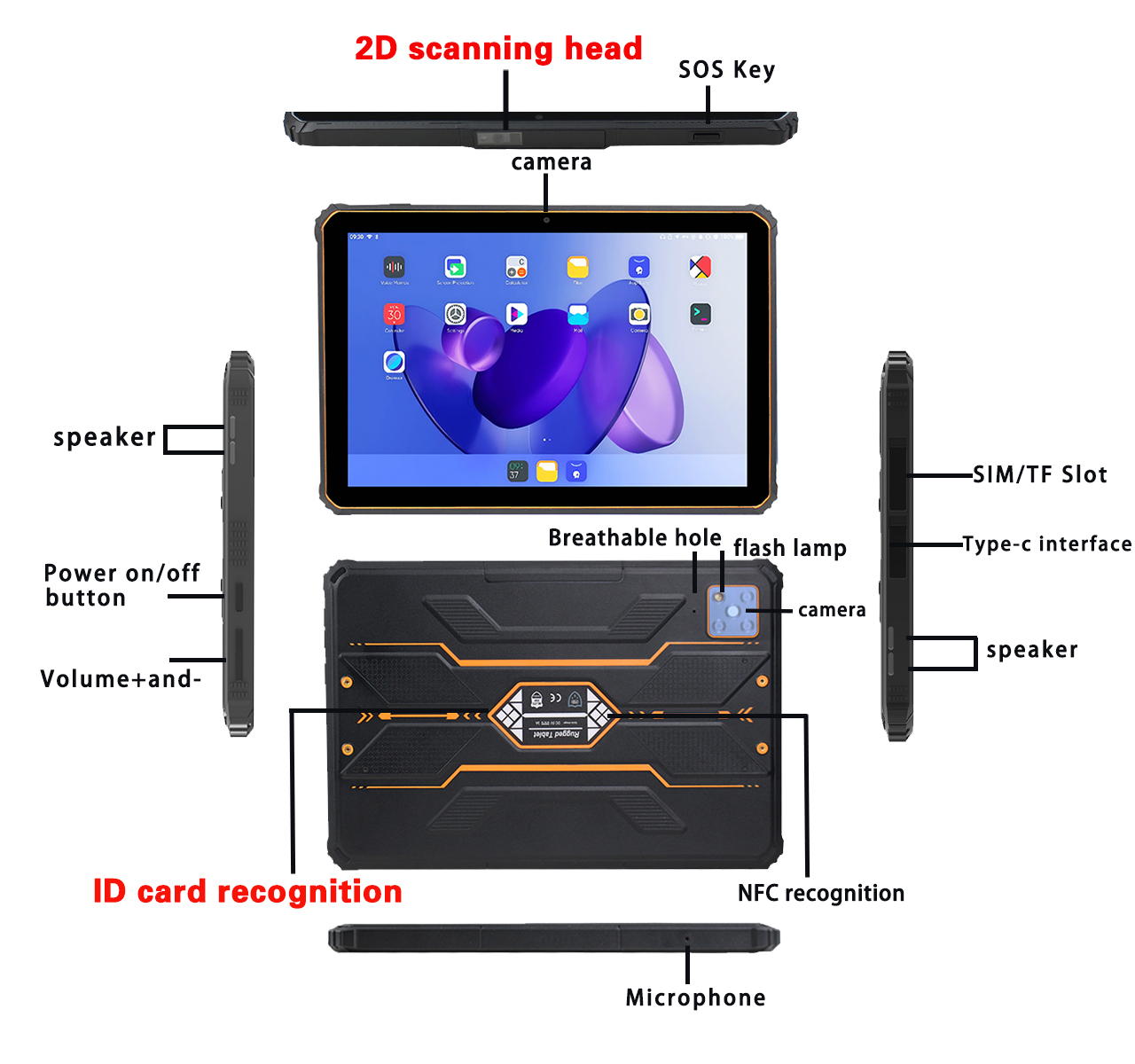 | ボタン (Button) | ボリューム+/-、電源ボタン、「SOS」ボタン;スキャナーバージョン:「SOS」ボタンを「スキャン」ボタンに変更 |